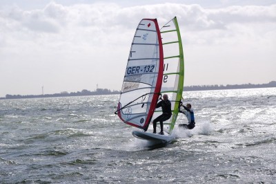 Leon Delle und Gabi Schlotmann im Rennen in Aktion am Wind